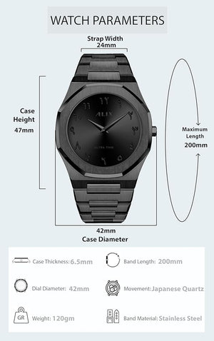 Crafted for those who value both meaning and style, the Arabic Aura Black Watch is ideal for modern trendsetters, cultural enthusiasts, and anyone looking for a unique Arabic-inspired wristwatch. Whether you're searching for a men’s Arabic watch, a thoughtful gift, or a sleek daily accessory, this piece delivers lasting quality and timeless appeal.