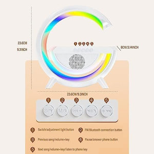 Features: Speakers, wireless chargers, ambient lights Comfort button, portable operation Multiple interfaces, supporting multiple links Powerful, wireless charging, audio, and atmosphere light The base contains anti-skid pad to protect the anti-skid Wireless charging, beautiful appearance Material: ABS+PC Weight: 700g Input voltage: 12V/2.5A wireless output: 5W-7.5W-10W-15W LDE output: 10W Bluetooth audio power: 3W Lighting modes: 256 Transmission distance: 2-6mm Charging efficiency: 75% Operating frequency: 100-205KHZ Button battery capacity: 40mAh Include: 1x Atmosphere Lamp 1Xusb cable 1x manual.